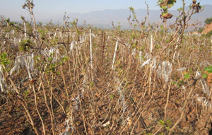 圖1:葉片提早脫落,樹體養(yǎng)分儲存不足,影響花芽繼續(xù)分化
