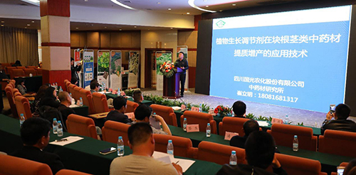 在專家座談中,四川省中藥行業(yè)協(xié)會(huì)會(huì)長(zhǎng)石才金;四川大學(xué)華西藥學(xué)院教授張浩;四川省中醫(yī)藥科學(xué)院教授舒光明;四川農(nóng)業(yè)大學(xué)教授田孟良;四川省農(nóng)科院經(jīng)作所研究員張超;四川省農(nóng)業(yè)廳高級(jí)農(nóng)藝師李濤等領(lǐng)導(dǎo)、專家作了專題演講,國(guó)光作物調(diào)控技術(shù)研究院中藥材所負(fù)責(zé)人就植物生長(zhǎng)調(diào)節(jié)劑在塊根莖類中藥材提質(zhì)增產(chǎn)的應(yīng)用技術(shù)進(jìn)行了分享。