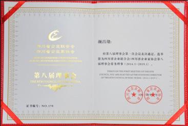 2014年1月,經(jīng)第八屆理事會第一次會議表決通過,公司董事長顏昌緒先生選舉為四川省企業(yè)聯(lián)合會/四川省企業(yè)家協(xié)會第八屆理事會常務理事。
