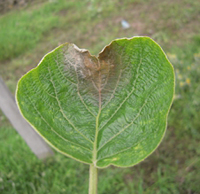 (2)發(fā)病防治:發(fā)病前(花前)或發(fā)病初期葉面噴施殺菌劑防治。