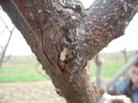 (3)春季管理:枝蔓發(fā)病,剪除枝條;主桿發(fā)病,刮除病斑,涂抹殺細(xì)菌藥劑。若發(fā)病過于嚴(yán)重,將挖除植株,當(dāng)場燒毀。