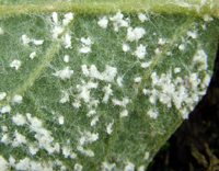 以成蟲、若蟲群集在葉背、嫩梢上刺吸危害,棲息時(shí)頭翹起,有時(shí)可見數(shù)十頭群集在新梢上,排列成一條直線;引起被害植株發(fā)生煤污病或嫩梢萎縮,畸形等,嚴(yán)重影響植株的生長和發(fā)育。