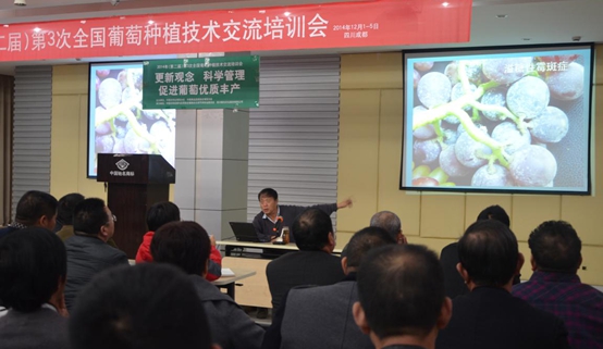 2014年12月1日—5日,由中國農(nóng)學(xué)會葡萄分會、中國果品流通協(xié)會葡萄分會主辦,中國農(nóng)藥發(fā)展與應(yīng)用協(xié)會植物生長調(diào)節(jié)劑專業(yè)委員會、國光承辦的2014年(第二屆)第三次全國葡萄種植技術(shù)交流培訓(xùn)會在國光召開,來自安徽、湖北、四川、山西、江蘇等地的200余名葡萄種植戶參加了會議。