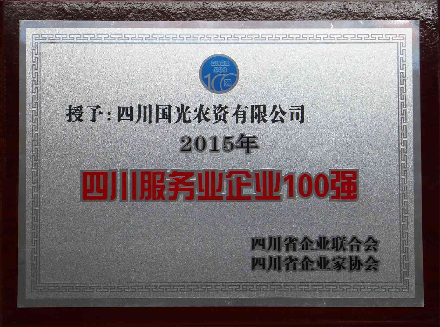 2016年1月15日,由四川省企業(yè)聯(lián)合會/企業(yè)家協(xié)會召開的第八屆三次理事會全體大會暨2016年企業(yè)家年會上國光公司及子公司分別榮獲2015年《四川制造業(yè)企業(yè)100強》、《四川服務(wù)業(yè)企業(yè)100強》稱號。
