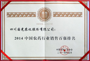 國光上榜“2014中國農(nóng)藥行業(yè)銷售百強(qiáng)排名”